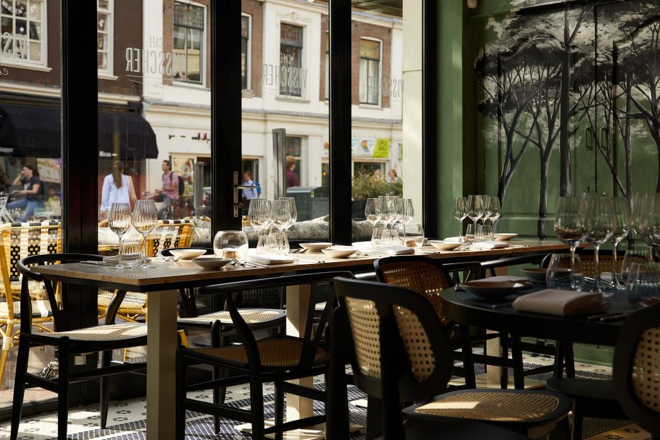 Het interieur van Café Visscher is warm en sfeervol, met een kosmopolitische vibe waar je je direct thuis voelt. Of je nu geniet in de lichte serre, een van de gezellige nisjes of – bij mooi weer – op het terras, elk moment van de dag voelt hier speciaal. Niet voor niets beloonde Michelin deze “luxebrasserie” met een Bib Gourmand voor uitstekende prijs-kwaliteitverhouding.